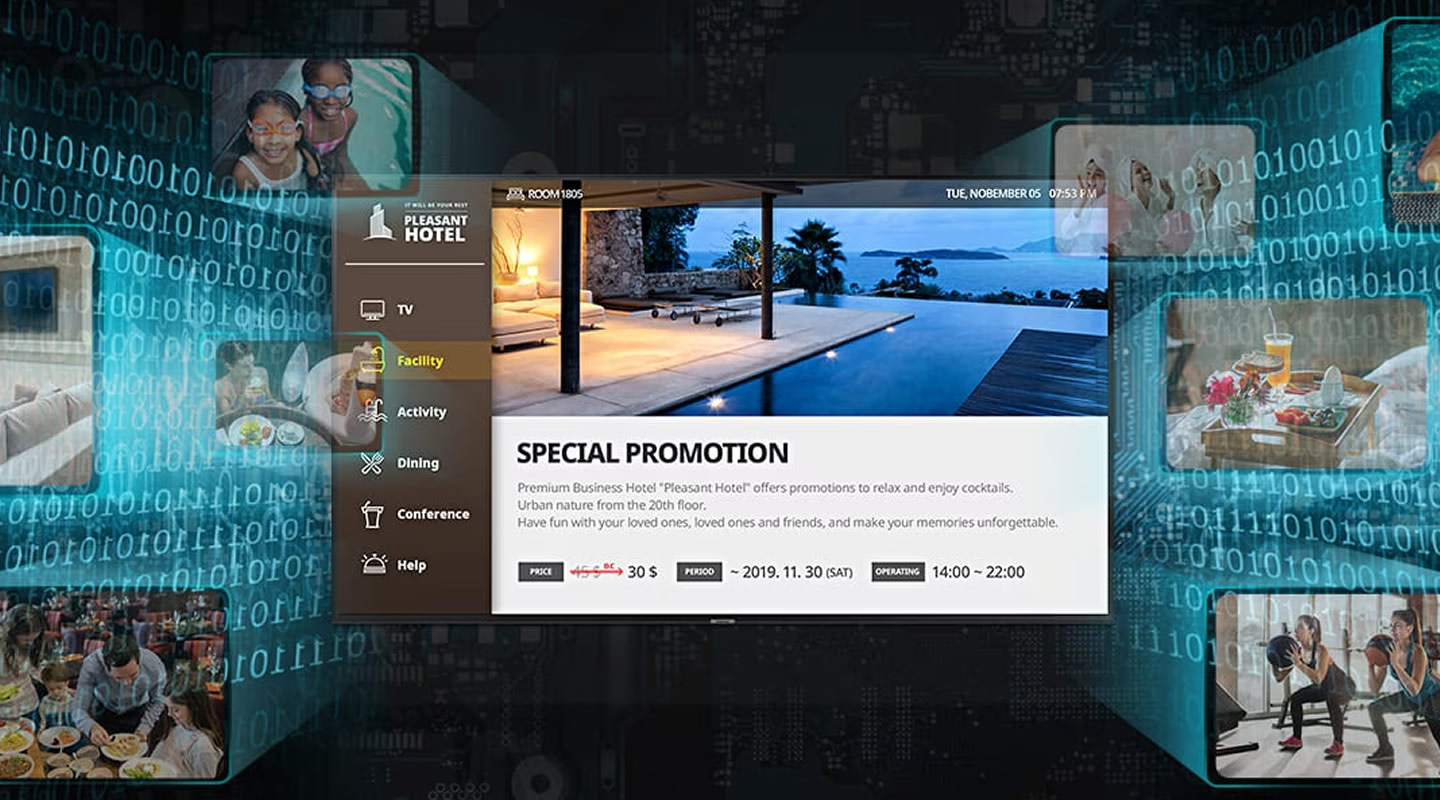 Samsung LYNK Cloud è una soluzione cloud completa per il settore Hospitality. Molto più di un potente sistema di gestione di contenuti e dispositivi, LYNK Cloud è in grado di analizzare l’uso dei contenuti da parte degli ospiti per ottenere informazioni utili ai fini del marketing, in modo che i gestori degli hotel possano offrire promozioni ottimizzate e incrementare le entrate.