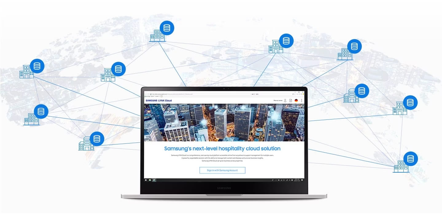 Samsung LYNK Cloud consente la gestione remota delle proprietà praticamente da ogni luogo del pianeta. Grazie all’accesso online e al supporto di più utenti, è la soluzione ideale per le operazioni di ospitalità a livello globale, con una gestione centralizzata che offre agli utenti il controllo dei display degli hotel dislocati in tutto il mondo.