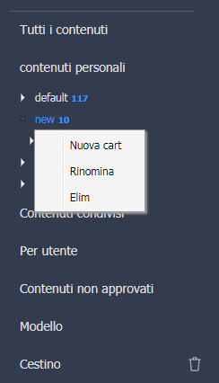 Contenuti personali: Visualizza i file di contenuti aggiunti con l'account di appartenenza. Crea sottogruppi all'interno dell'account di appartenenza.