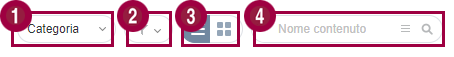Consente di modificare la modalità di visualizzazione dei contenuti o di cercare un file di contenuto.