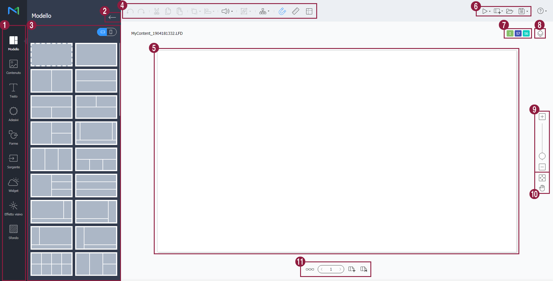 Il Web Author è un potente editor che consente di creare contenuti LFD Signage sul display.