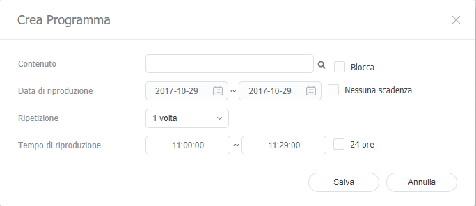 Aggiunge e gestisce i file dei contenuti in MagicINFO Server. Distribuisce i file dei contenuti ai dispositivi LFD.