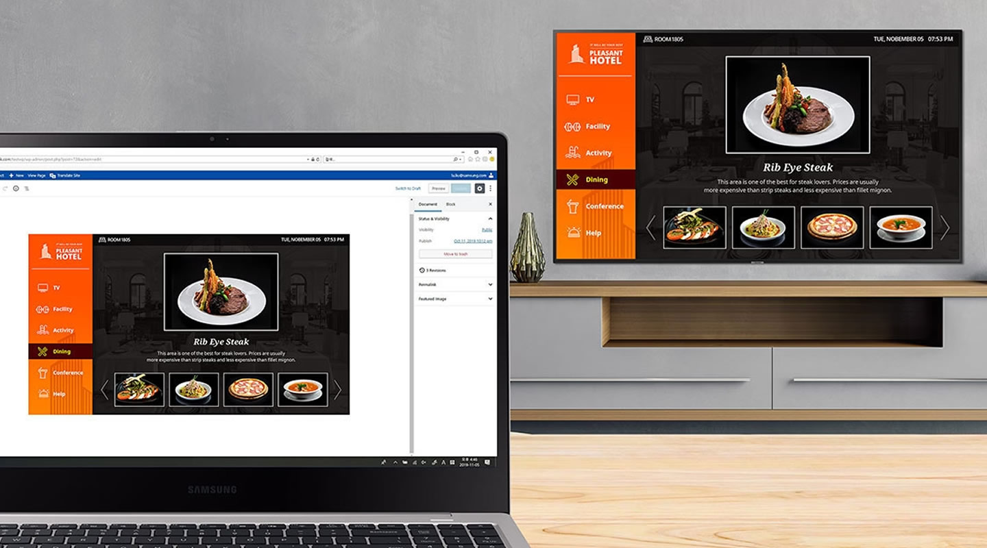 Interamente dedicato al settore dell’accoglienza, Samsung LYNK Cloud è una soluzione cloud completa che, grazie a validi strumenti per la gestione di contenuti e dispositivi, permette di analizzare l’uso dei contenuti da parte degli ospiti e ricavare insight dettagliati.