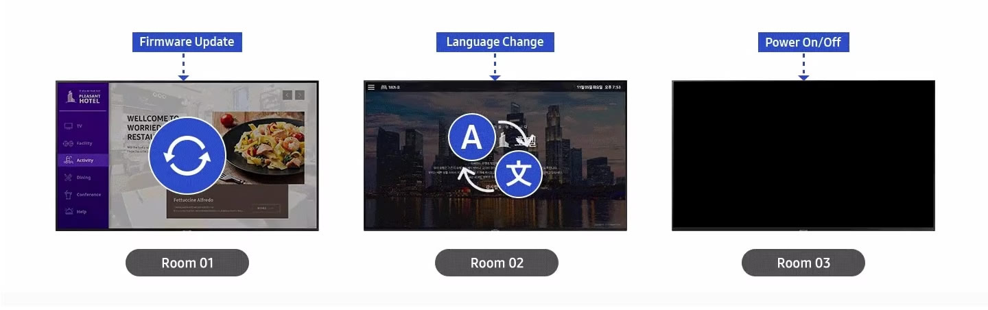 Samsung LYNK Cloud consente la gestione remota delle proprietà praticamente da ogni luogo del pianeta. Grazie all’accesso online e al supporto di più utenti, è la soluzione ideale per le operazioni di ospitalità a livello globale, con una gestione centralizzata che offre agli utenti il controllo dei display degli hotel dislocati in tutto il mondo.