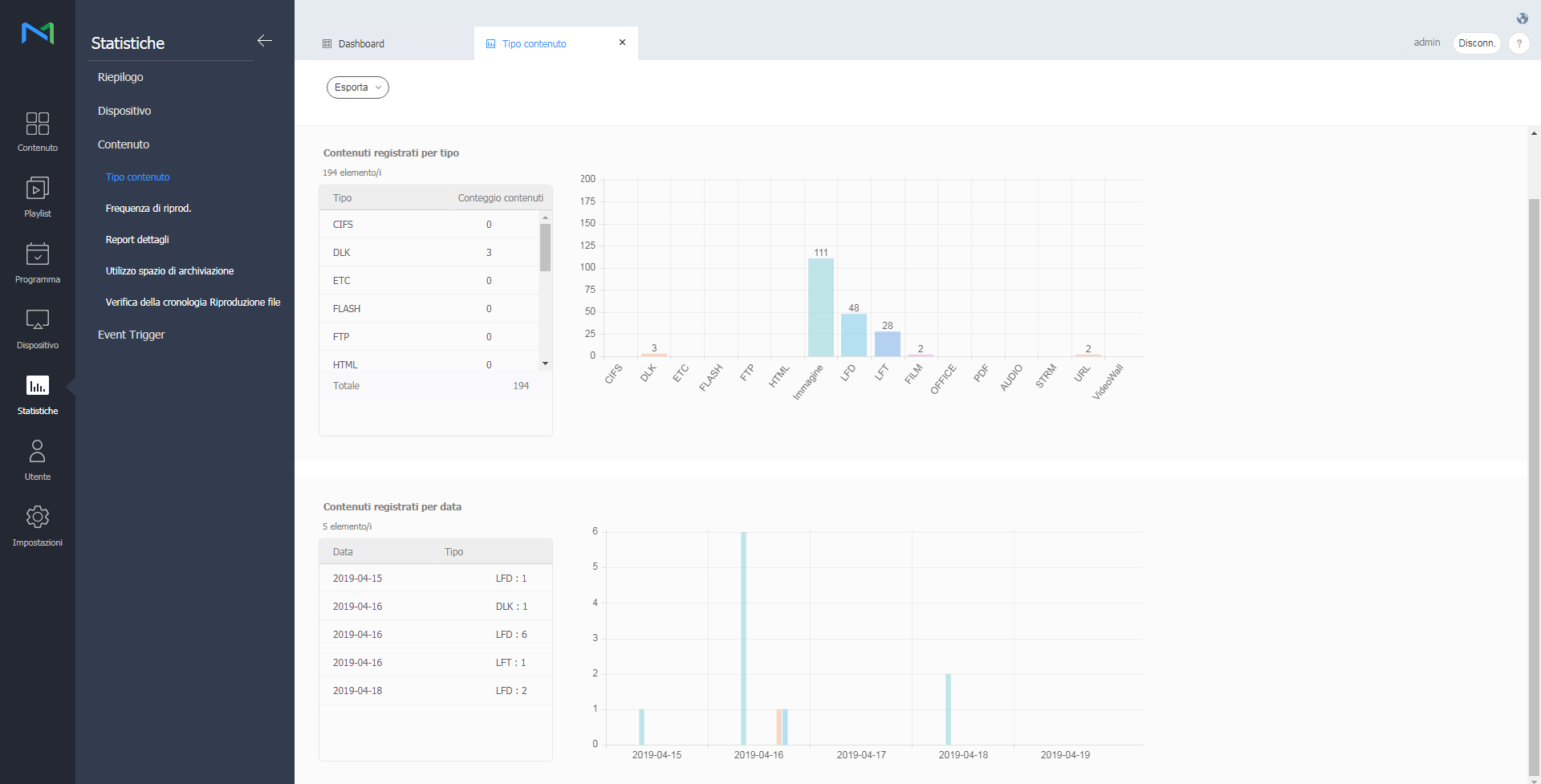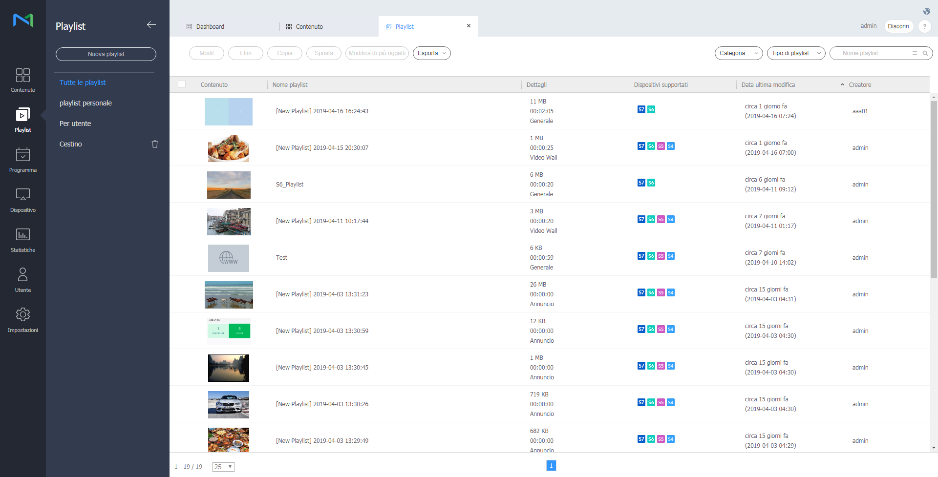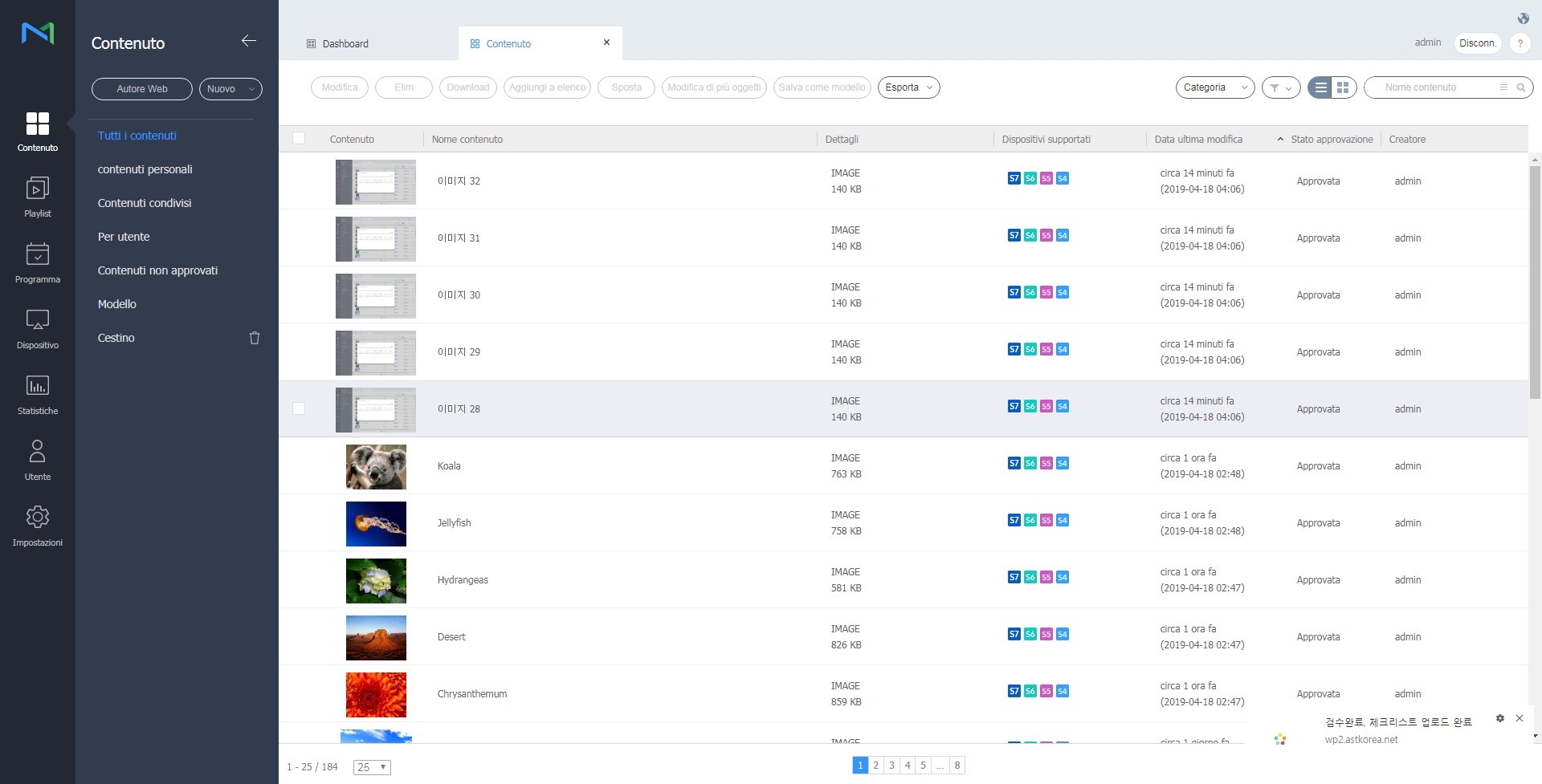 Aggiunge e gestisce i file dei contenuti in MagicINFO Server. Distribuisce i file dei contenuti ai dispositivi LFD.