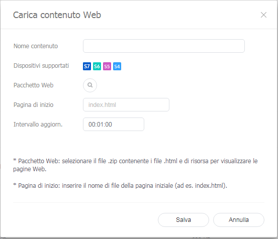Nome contenuto: Consente di immettere il nome del contenuto HTML.