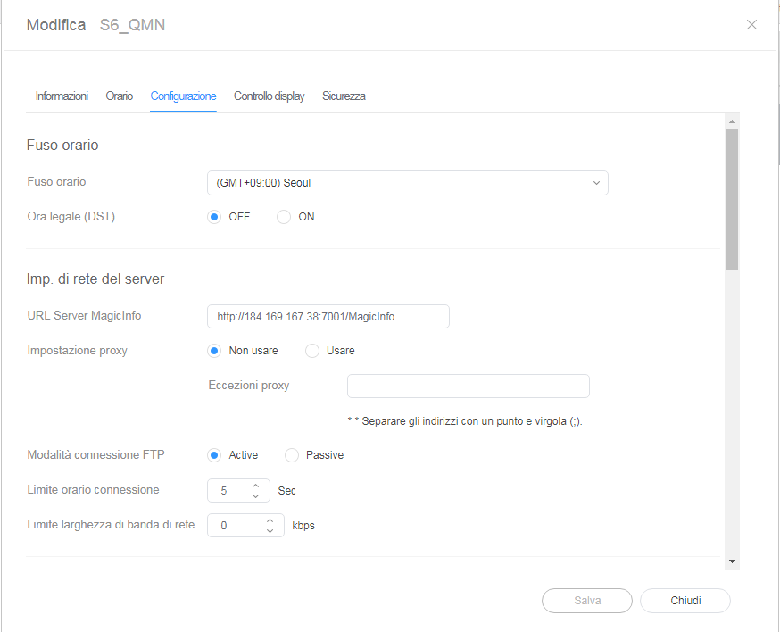 L'indirizzo IP vi è stato assegato e comunicato durante l'installazione MagicINFO.