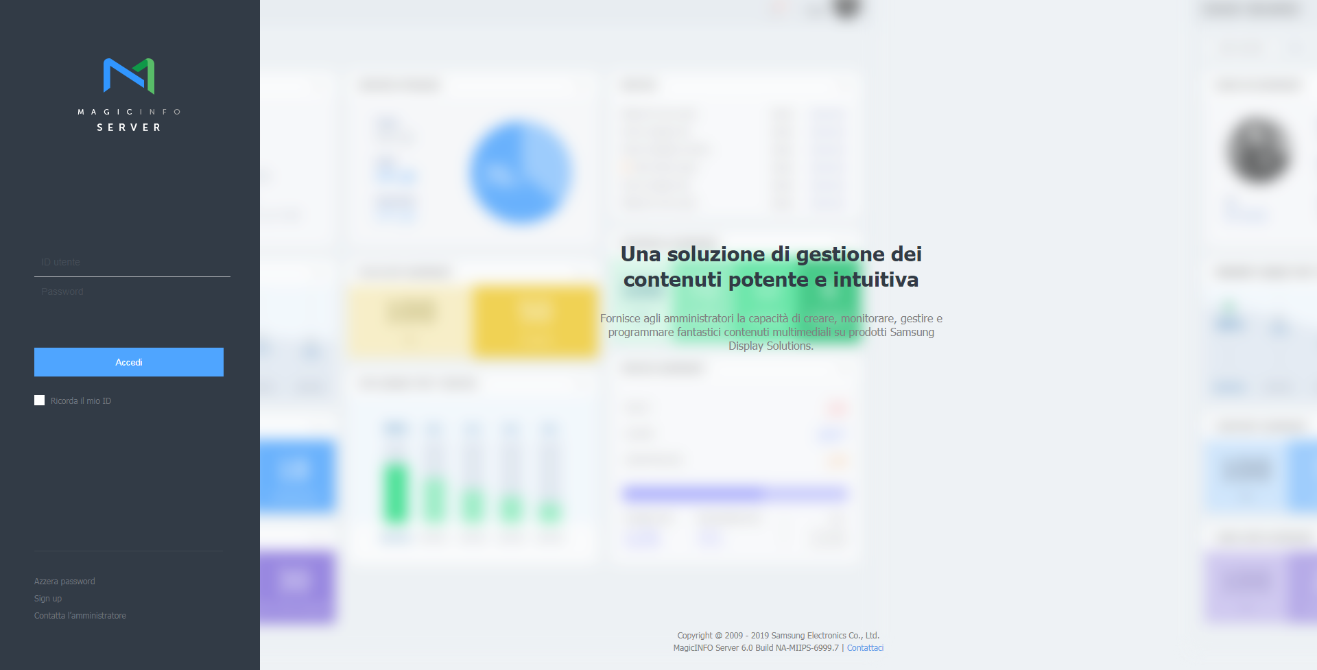 1 Immettere http://(IP MagicINFO Server ):7001/MagicINFO nella barra degli indirizzi del browser web.