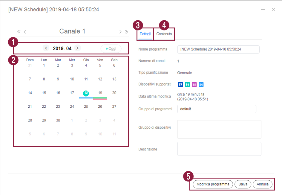 7 Si visualizzano i tipi di dispositivi che possono riprodurre il contenuto che si sta configurando.