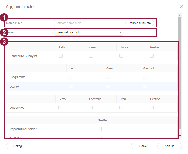 5 Salva: consente di salvare le informazioni modificate nella finestra di dettaglio;