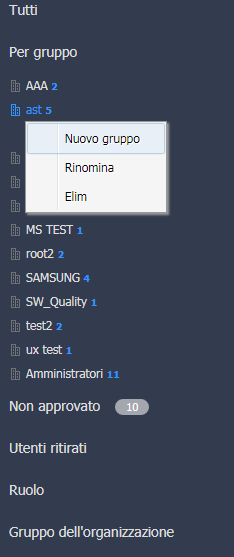 Opzione 1: Selezionare un gruppo e cliccarvi sopra con il pulsante destro del mouse.